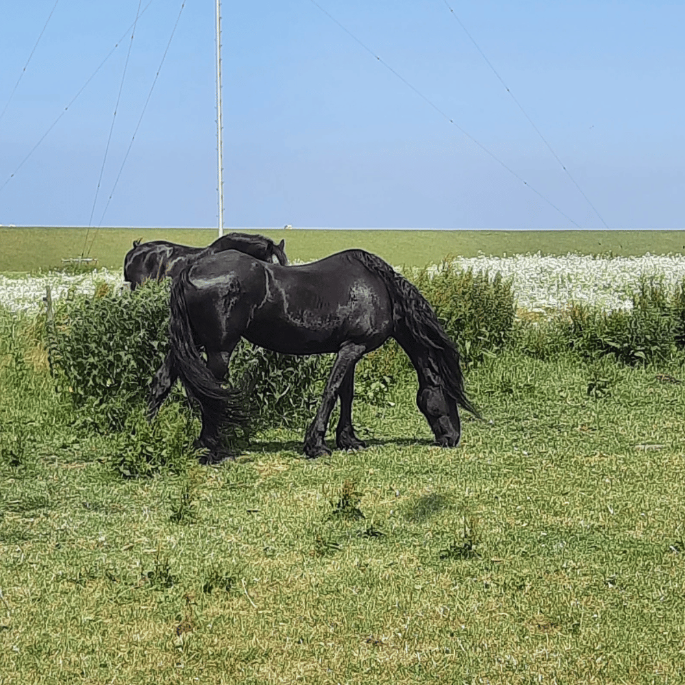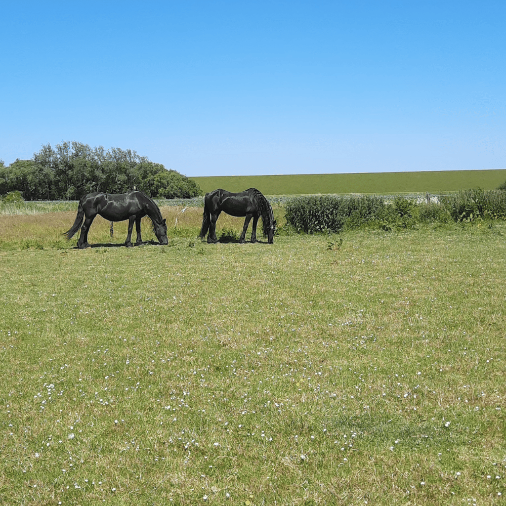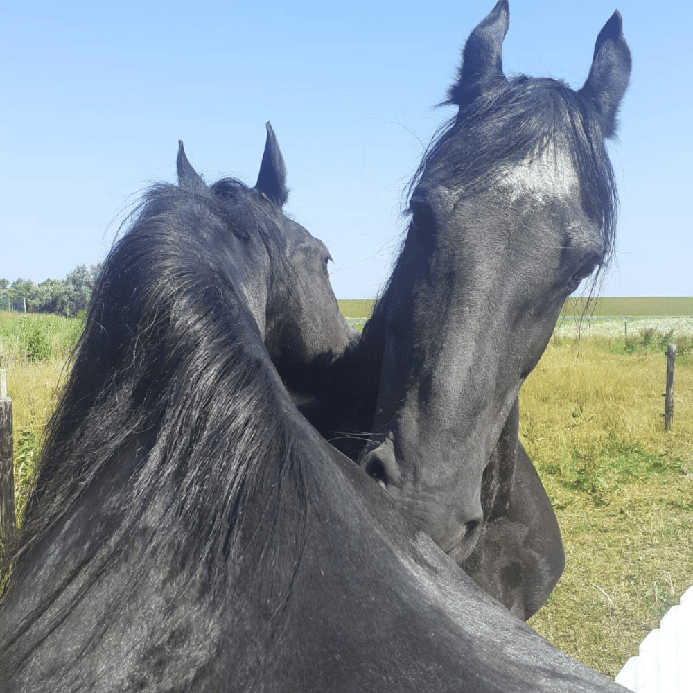 Je stapt het veld in en er ontstaat wat er mag ontstaan. Onze twee Friese paarden laten je zien wat er gezien mag worden.